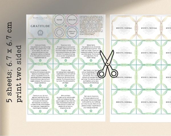 You will receive your unique download button that will take you to your files - 2 pdf files that contain the cards in two different formats (5c5 and 6.7x6.7 cm) and one file with tips on how to use the cards and how to practice gratitude.